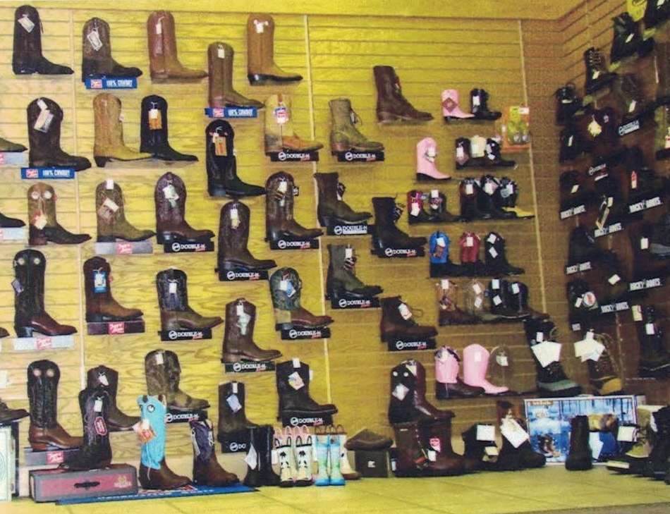 - Boots—Carolina, Double H, Rocky, Wolverine, Lacrosse, Tony Lama